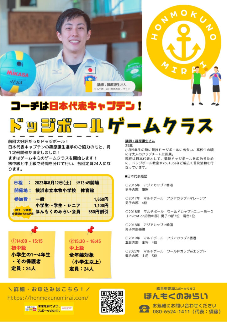日本代表キャプテンの篠原謙生選手のご協力のもと、月1定例開催が決定しました!
